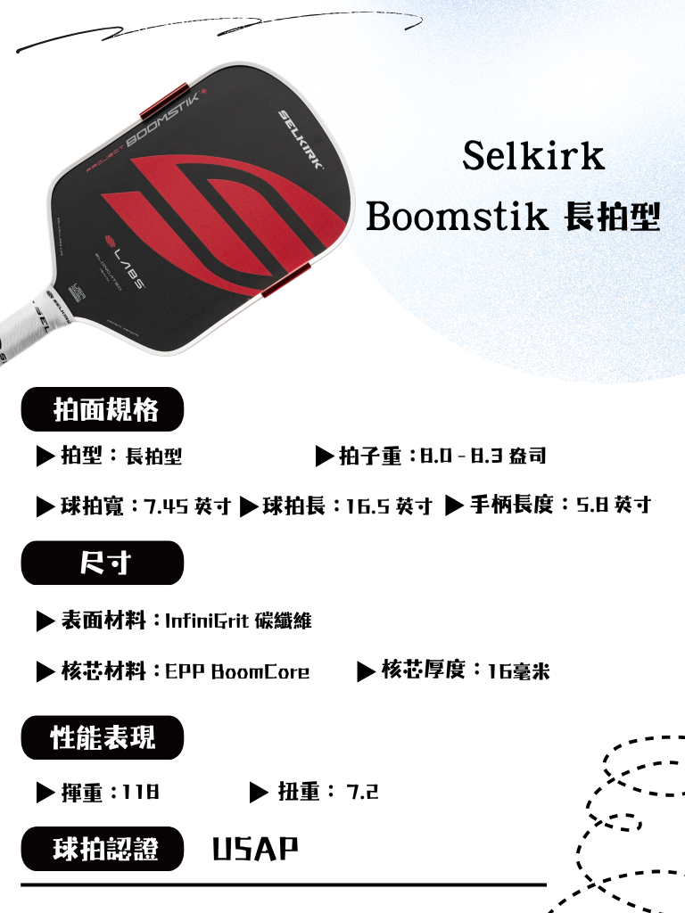LABS Project Boomstik Paddle Limited Lifetime Warranty (Original Purchaser Only): Continuing Selkirk's promise of uncompromising quality, the Selkirk LABS Project Boomstik paddle is covered by a limited lifetime warranty against manufacturer defects. (Authorized by Selkirk Official)