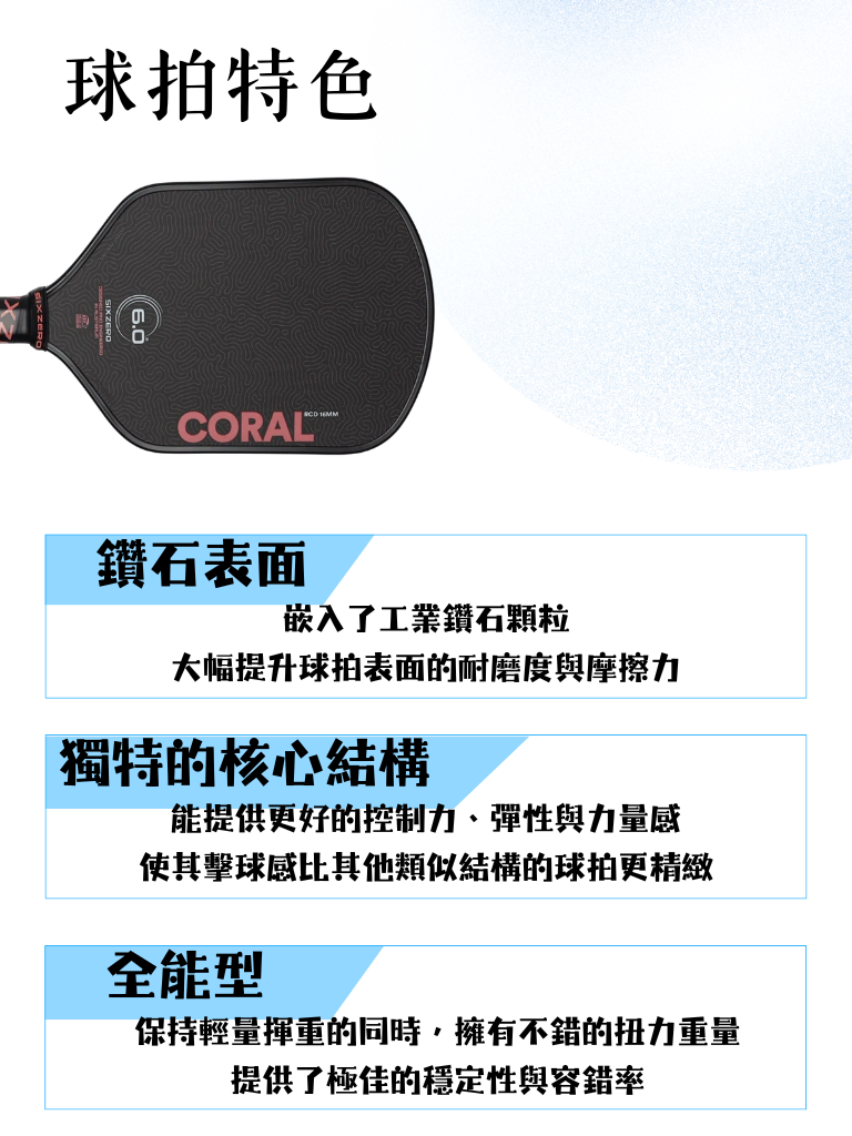The Coral from Six Zero delivers a perfect blend of control, stability, and plush power, redefining a new era for all-court paddles.