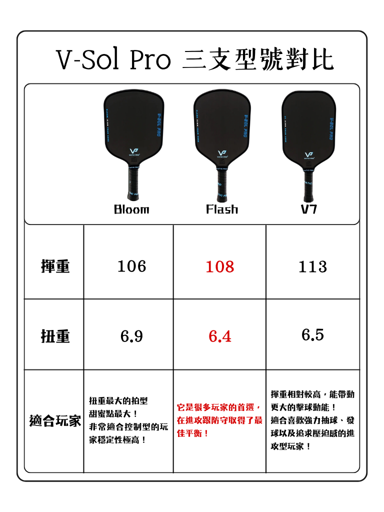 Vatic Pro V-Sol Pro Flash (Hybrid) Standard Handle Pickleball Paddle