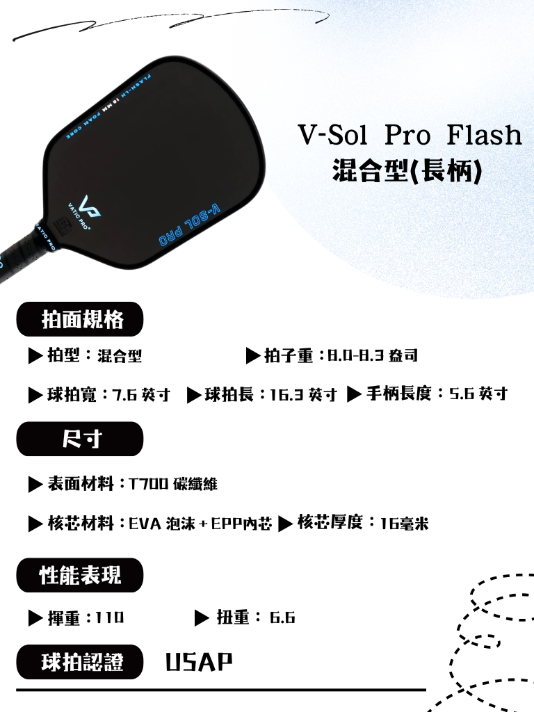 Vatic Pro V-Sol Pro Flash (混合拍型) 長柄匹克球拍